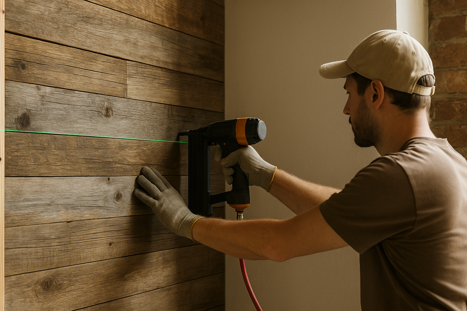 Старое дерево редко идеально прямолинейно — допустима лёгкая «волна» по кромкам и лице. Критично контролировать плоскость обрешётки: отклонения более 2–3 мм на 2 м визуально читаются рябью бликов. Шаг крепежа обычно держат в диапазоне 300–500 мм; на участках с ожидаемой нагрузкой (изголовья, зоны дверных ударов, высокие стеновые панели) усиливают точки фиксации. При стыковке по длине лучше формировать «разбежку» швов, избегая линейки из поперечных стыков на одной вертикали.