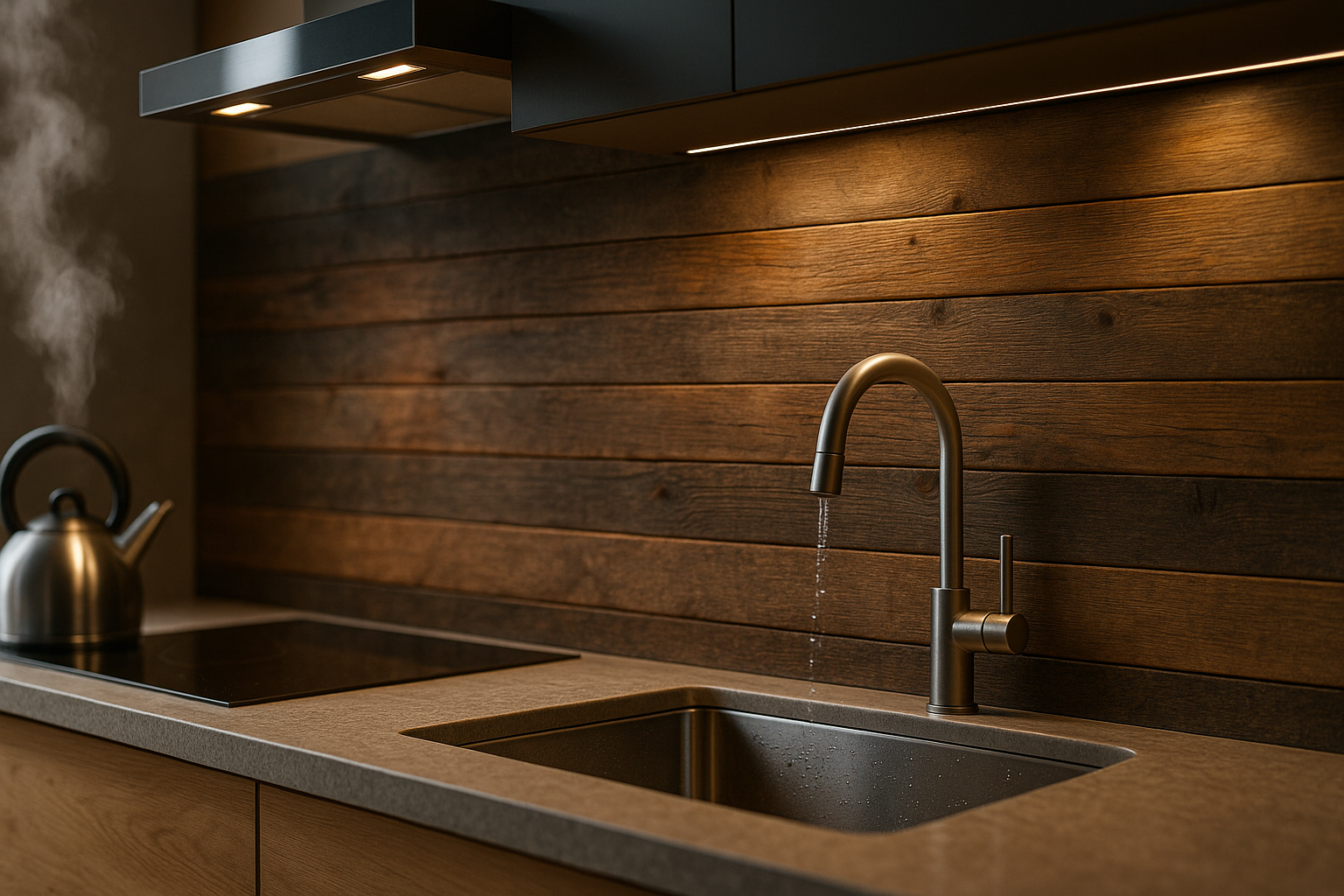 Логика простая: в местах прямого контакта с водой и жиром используйте экран (камень, керамогранит, стекло), а ретродоску — контуром вокруг. Над мойкой и варочной панелью формируйте жёсткий фартук, а ретропанели поднимайте выше линии активного разбрызга. В душевых — только при наличии герметичного разобщающего слоя и отдельного экрана; в большинстве бытовых кейсов безопаснее держать дерево вне мокрой кабины.